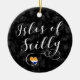 Christmas decoration with stylish scripted design features the flag of the Isles of Scilly in a heart.