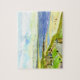 Jigsaw Puzzle printed from a painting of Holy Island from Bamburgh Castle,the white building on the rocks is Harkness Lighthouse and the houses to the left is The Wynding.