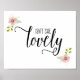 Darling quote for a sweet baby girl's nursery wall - "isn't she lovely" is decorated with pretty pink poppy flowers in blush pink and soft green with lettering in a mix of modern typography. Easily customised with baby's name and birth details. Perfect for a new baby gift. Also available as a print without the personalisation for a lovely baby shower gift for the nursery before baby is born.