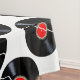 A broken LP vinyl record with red label and a circle of piano keys all over a white background.