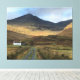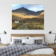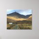 Large canvas print showing a view of an isolated farmhouse on the Isle of Mull in Scotland. A Scottish scene with a white painted farmhouse in the shadow of the mountains.