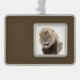 Isolated lion sitting and sticking out your tongue silver plated framed ornament