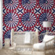 This unique wallpaper and curtain design features an eye-catching isometric pattern of the USA flag. The flag is represented by blue stars on a white background, enclosed within a red circular border. The stars are arranged in a captivating radial pattern, with the central area showcasing the iconic blue field. This design adds a touch of modern geometric flair to any space while celebrating American patriotism.