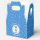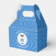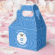 Personalised gable favour box shows our angel wearing the flag of Israel for holiday party decorating or Hanukkah celebration. The Israeli Flag angel is found inside a white, fractal circle of squiggly squares. The background is a blue fractal of squiggly squares. Add your own text or personalise with a name and the year. Make your Hanukkah celebration stand out with these Gable favour boxes featuring the Israeli angel.