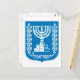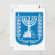 The Emblem of the State of Israel (Hebrew: סמל מדינת ישראל) shows a menorah surrounded by an olive branch on each side, and the writing "ישראל" (Hebrew for Israel) below it. Most commonly light blue and white, the coat of arms does appear in different colour combinations depending on the use.