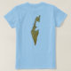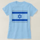 The front of this t-shirt boldly displays the Israeli flag with its distinctive blue hexagram on a white band with blue and white bands above and below. This is matched at the back by an attractive map of Israel.