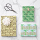 Jerusalem-themed wrapping paper that can also be used for scrapbook, travel journal, etc. Front paper is a drawing of walls in Jerusalem. Second paper displays patterns of palm leaves. Third paper has date palm trees along side the walls.