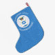 Large Christmas stocking for holiday and Hanukkah decor featuring an angel dressed in the blue and white flag of Israel. Designed for families of multiple religions. The Hanukkah Israeli flag angel flies inside a white circle of squiggly squares, surrounded by a background of blue squiggly squares. Add a name to personalise. Customise with the year. Or, add your own text.