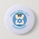Personalised round button pin features an angel wearing the flag of Israel and flying in the centre of a digitally created, textured, blue circle. The primary colours in this design are blue and white, chosen with Hanukkah in mind. Blue letters read ISRAELI ANGEL and make a space for the year and a name, allowing you to create a customised gift or personalise your look. Background is white squiggly squares. Fun stocking stuffer, especially for families of multiple religions.