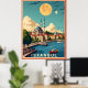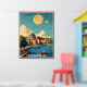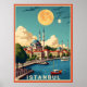A serene Bosphorus waterfront, iconic mosques under a full moon and a vintage travel poster style. Perfect for travel lovers and fans of Turkish decor.
