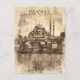 This travel postcard, in hand drawn sketch-style, showcases a view of old Istanbul.