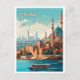 Istanbul Turkey Art Vintage Travel Illustration Postcard