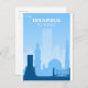 Anyone would love to receive this blue vintage travel poster postcard featuring a retro illustration of the skyline in Istanbul, Turkey!