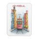 A vibrant city skyline featuring colorful buildings and a historic tower against a warm sunset background inspired by the city of Istanbul, Turkiye. This illustration is great for travelers of Istanbul, Turkiye.