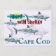 iSurf with Sharks Cape Cod, MA Surfing Shark Postcard ^