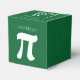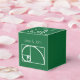 Give your guests, bridesmaids, groomsmen, or anyone else a special treat with these customisable favour boxes featuring a green background with a white graph on the top, white Fibonacci spiral on the front, and Pi on the back of the box. Each of these sides also features some sample text that you can customise for your own geeky wedding or event, and will remind them of your shared interest in math.