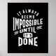 It Always Seems Impossible Until It's Done - Motivational Message. Gift for mother, father, sister, brother, aunt, uncle, grandma, grandpa and friends. Motivational quote, positive and encouraging slogan gift.