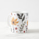 It is a mug decorated with flowers and leaves.