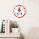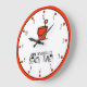 Cute orange-red sand pail and shovel decorate this Beach Time clock with a whimsical style text. Fun decor for a beach house or cottage or for a beach lover. Available in a variety of colours!