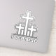 It Is Finished with 3 Crosses Custom-Cut Vinyl Sticker. Grey and White.