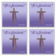 "It is finished" — John 19:30, the last words of Jesus from the cross. Features a wooden cross with a purple cloth draped across the beams and the quote. Great for Good Friday services and reflection on the Passion and death of Christ.