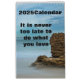It is never too late to do what you love 2025 calendar is perfect for beach lovers of all ages. This unique calendar features gorgeous photography of some of the most beautiful beaches images in the world . It's the perfect gift for anyone who loves spending time outdoors, and will help to keep them.