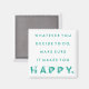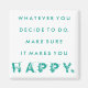 Inspirational quote magnet featuring the quote "Whatever you decide to do, make sure it makes you happy." over a teal and white design. Perfect gift for someone who is at a crossroad in their life.