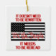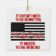 On top of a black and white image of the American flag in red are the words "We the People." Above it says, "It doesn't need to be rewritten." Underneath the flag it says, "It needs to be reread." The image is printed on both sides of the ornament.