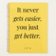 This quote means that challenges and difficulties in life don’t necessarily become less demanding, but as you gain experience, skills, and resilience, you become more capable of handling them. The effort required might stay the same, but your ability to navigate and overcome obstacles improves.