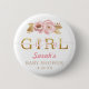 Celebrate the arrival of a sweet baby girl with this elegant blush pink floral baby shower favour button. Featuring delicate watercolor florals, faux gold glitter text, and customisable details, this pinback button makes a charming keepsake for guests or a fun accessory for the mama-to-be. A lovely touch for a memorable day!