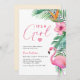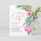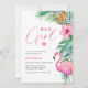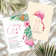 Celebrate your baby girl on the way with this adorable flamingo baby shower invitation, featuring a tropical palm leaf and hibiscus border, bold "It’s a Girl" lettering, and a sweet watercolor flamingo. Perfect for a summer or tropical-themed celebration, this invite brings a splash of fun and femininity to your event.