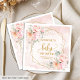 Celebrate your little girl in style with these beautiful blush pink and gold baby shower napkins featuring watercolor florals, soft pastel pink peonies, and a shimmering gold glitter frame. Perfect for adding an elegant touch to your girl baby shower table decor, these floral luncheon and cocktail napkins are designed in a charming boho watercolor style with shades of blush pink, powder pink, pale pink, and sage green. Stylish and functional, they are a lovely detail for serving treats, cake, and drinks while matching perfectly with your party theme. Guests will adore the pretty blush pink flowers with gold accents, making your baby shower memorable and picture-perfect. These custom baby shower napkins are ideal for creating a cohesive and elegant celebration for your sweet little girl.