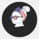 It’s Fall Y’all Messy Bun Women USA Flag Classic Round Sticker