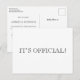 It’s Official! Modern Eloped Wedding Announcement Postcard