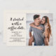 "How it started" engagement photo announcement. Personalise with your photo and text. Our text says, "It started with a coffee date...Now I've got a ring on my finger." How did your relationship begin? Contact me for help in making your story fit on this card.