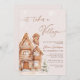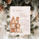 The It Takes a Village Christmas Winter Baby Shower Invitation with a gingerbread house theme and a creates a charming and cosy winter wonderland scene. The invitation features a delightful, whimsical village of gingerbread houses dusted with “snow” icing, surrounded by delicate snowflakes. Each house, intricately decorated with icing, gumdrops, and tiny candy accents, represents the welcoming support of friends and family as they come together to celebrate the new baby. The colour palette is soft and inviting, using neutral winter tones. It’s an invitation that promises a gathering full of warmth, love, and shared excitement amid a cosy winter scene. Matching items available.