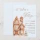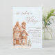 The It Takes a Village Christmas Winter Boy Baby Shower Invitation with a gingerbread house theme and a creates a charming and cosy winter wonderland scene. The invitation features a delightful, whimsical village of gingerbread houses dusted with “snow” icing, surrounded by delicate snowflakes. Each house, intricately decorated with icing, gumdrops, and tiny candy accents, represents the welcoming support of friends and family as they come together to celebrate the new baby. The colour palette is soft and inviting, using neutral winter tones. It’s an invitation that promises a gathering full of warmth, love, and shared excitement amid a cosy winter scene. Matching items available.