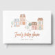 A baby shower guest book to match our It Takes A Village Gender Neutral Baby Shower collection. This gender-neutral design features a hand-drawn scene of a town, with different buildings, shops, trees, and more. The illustration is in a simple, pencil style. On the front, your name is written in real foil modern calligraphy. The foil-stamped text "it takes a village" is on the back side of the book. Ask friends and family to sign your baby shower guest book to create a keepsake to look back on for years to come. View the collection linked on this page for the full baby shower bundle. Visit our store for more baby shower designs.