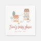 Baby shower napkins to match our It Takes A Village Gender Neutral Baby Shower collection. This napkin features a hand-drawn scene of a town, with different buildings, shops, and more. The illustration is in a simple, pencil style, and your name is written in a modern calligraphy. Add a sweet, personal touch to your baby shower with these custom napkins, perfect for drinks, desserts, and place settings. View the collection linked on this page for the full baby shower bundle. Visit our store for more baby shower designs.