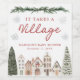 Dress up your beverage bottles with these It Takes a Village baby shower wine labels. The charming design features a watercolor village nestled between evergreen trees with snowflakes and a greenery garland across the top. “It Takes a Village” appears in festive red script above customizable text for the mom-to-be’s name and shower date. Perfect for winter or holiday baby showers, these labels add a cozy, coordinated touch to your party décor and make lovely favors or display accents.