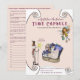 Interactive Checklist: The back provides 10 curated ideas for items to include in the capsule—like newspaper clippings and current prices—with extra lines for guest suggestions.