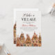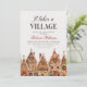 Invite your loved ones to a cosy winter celebration with this It Takes a Village baby shower invitation. Featuring a charming gingerbread houses scene and a baby troller, this rustic design captures the spirit of family, friends, and togetherness during the winter season.