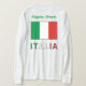 Women's long sleeved t-shirt showing the flag of Italy, or in Italian, Bandiera Italiana. Below, the word ITALIA, in the red, white and green stripes of il Tricolore. Above, a place for a name, in green letters. Create a personalised touch for yourself or add someone else's name for a customised gift. Design shows on front and back of shirt. Might be just the thing for your travel group or Italian family reunion. The font and/or colour of the name can be changed by using the "edit design" option.