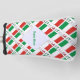 Golf head cover features the Italian Flag or Bandiera Italiana, with the word ITALIA below in the colours of the flag of Italy. Design is tiled for a more artistic effect. A white fractal of digitally created squiggly squares holds a spot for your name, in green letters, for a personalised touch. Or, add someone else's name for a customised gift.