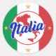 The national flag of Italy provides the background, on which a map of the country sits along with text, Also, there are four faux gold stars which are purely decorative.