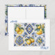 In watercolor art : The italian style of Amalfi, floral blue and white italian tiles with lemons for your postcard