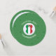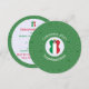 For your Christmas party, this round invitation features an angel wearing the flag of Italy. She flies inside a white, fractal circle of squiggly squares, surrounded by a background fractal of green squiggly squares. Add a name to the front to personalise. Add a year to customise. Or, change the text to whatever you like. Party information is on the back and can be customised for your event.