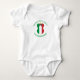 Personalised baby bodysuit shows an angel wearing the flag of Italy for holiday apparel or Christmas wearing. The Italian Flag Christmas angel is found surrounded by text allowing you to add your own text or personalise with a name and the year. Lettering is green. Lovely Christmas gift for baby.
