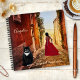 A romantic notebook featuring a painting of a lady in red with a cute big tuxedo cat in an Italian village. Purrfect for personal notes, a diary or travel journal.