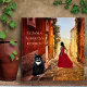 A modern art tile featuring a Sicilian street scene with a lady in a beautiful red dress and a cute big cat. The design is large enough for a large tile size as well.